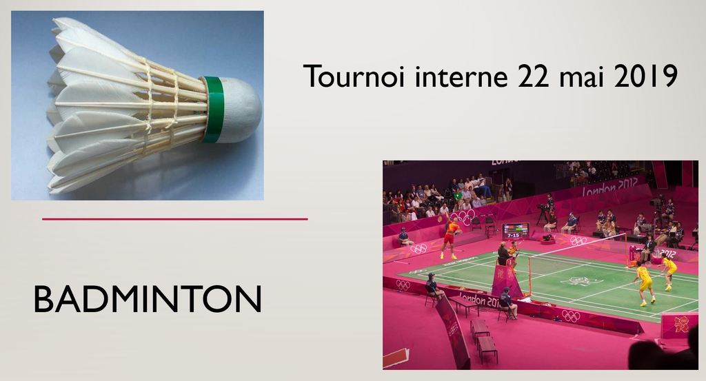 Le SOM Badminton organisera un tournoi interne (en double) le mercredi 22 mai 2019 au gymnase du Puit de Cales.